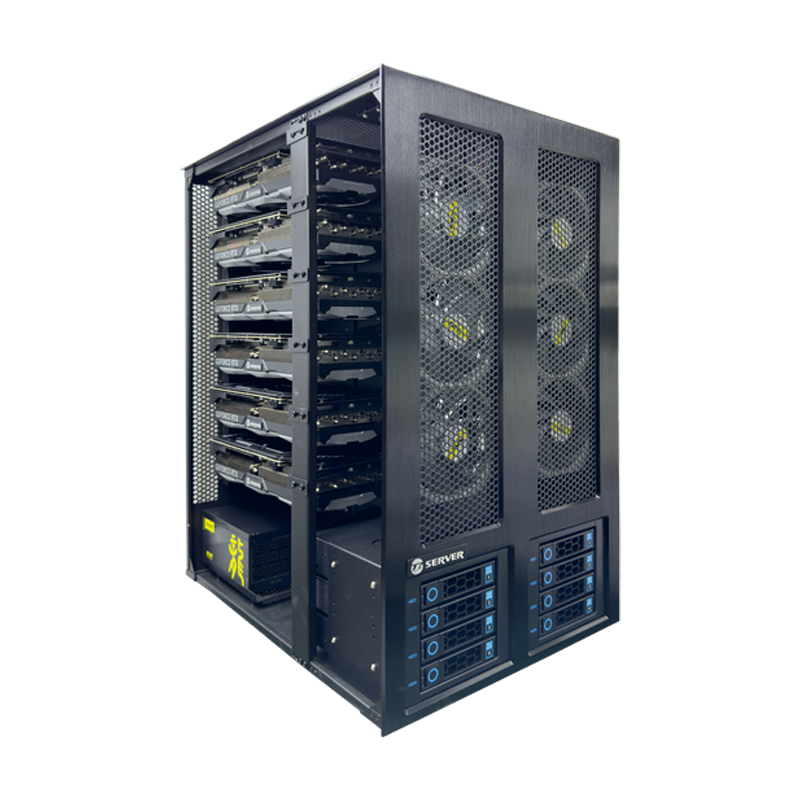 廣州天翱TA-WS06A工作站,定位是HPC及深度學(xué)習(xí)(AI)應(yīng)用平臺(tái)。支持6路3.5寬的顯卡機(jī)型,可有效解決當(dāng)下4090游戲卡的多卡安裝問(wèn)題,散熱問(wèn)題。供電方面采用兩個(gè)2000瓦特ATX電源同步供電、整機(jī)功耗可支持4000瓦特。另外整機(jī)采用靜音方式散熱,擺脫噪言困擾,非常適合學(xué)術(shù)研究辦公室跟實(shí)驗(yàn)室等環(huán)境使用。