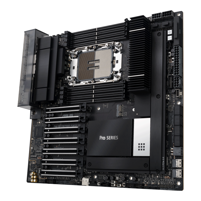 AMD WRX80 Ryzen? Threadripper? PRO extended-ATX 工作站主板配備雙 Intel 10 G LAN, USB 3.2 Gen 2x2 Type-C 接口, 7 x PCIe 4.0 x16 插槽, 3 x M.2 PCIe 4.0, ASMB9-iKVM, 2 x U.2 和 16供電模組