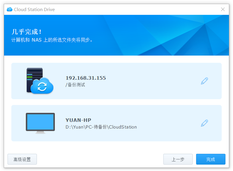 8. Double-click the Cloud Station Drive icon in the tray to open the software and you can see the running status of the backup.