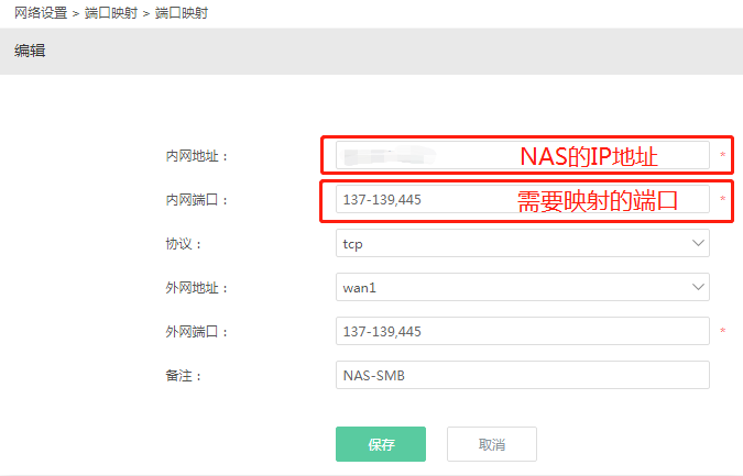 1. First, you need to map the SMB-related ports on the router and map the ports 137-139 and 445 to the external network.