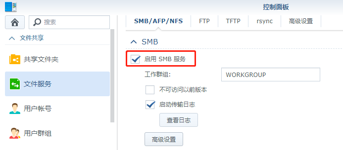2. Enable SMB Service in Control Panel > File Service >