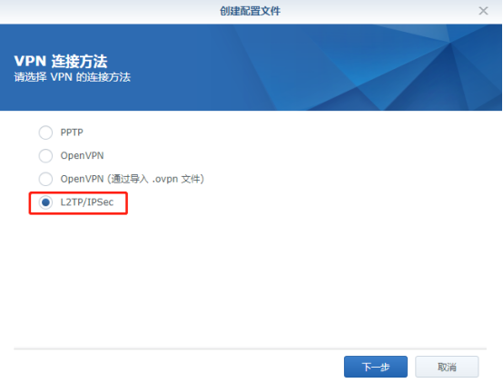 3. Select according to the actual VPN connection method. Here, L2TP/IPSec is selected. If the VPN connection method is corresponding to other forms of selection.
