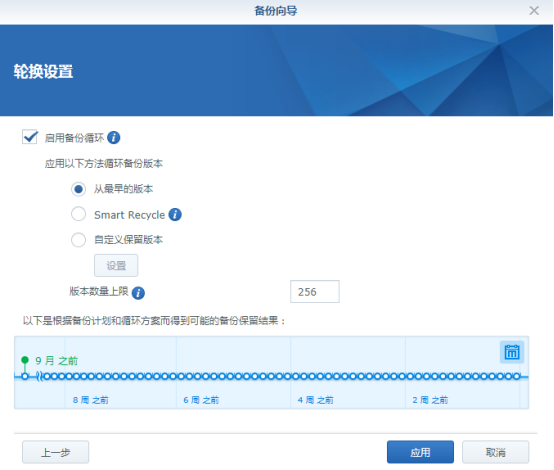 13, enable backup cycle: the maximum number of versions is 256, the version is equivalent to the number of copies of the same data can be retained