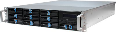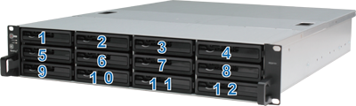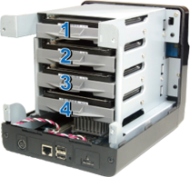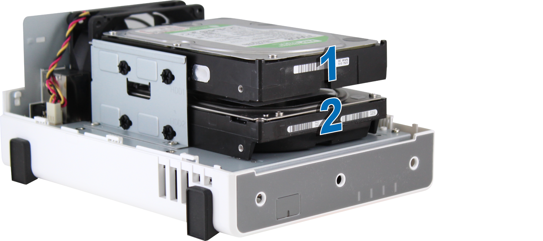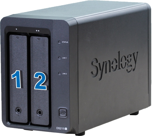 For Synology NAS with 2 or more hard drive models, the hard drive locations are sorted from left to right or top to bottom. To find the actual hard drive, please refer to the number shown below.